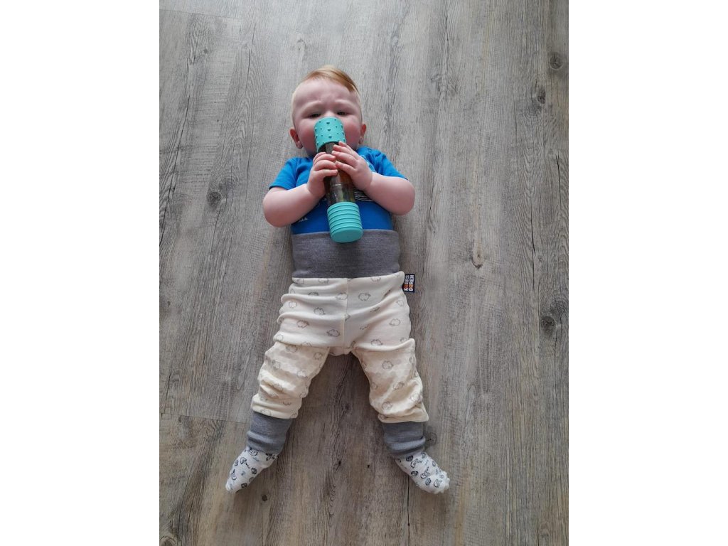 Dětské kalhoty ve velikosti 86 s protiskluzovou vrstvou na kolenou pro pohodlné lezení v interiéru. Když děti začínají lézt, jsou nestabilní a na plovoucí podlaze, nebo na linu jim to klouže a mohou se uhodit. Protiskluzová vrstva na kolenou jim pomůže zajistit stabilitu. Kalhoty mají lem v pase i na nohavicích a přehnutím, nebo natažením je lze používat delší dobu než kalhoty klasické - vydrží i přes dvě velikosti. Kalhoty vyrábíme v ČR z bavlny. Lze je prát otočené naruby v pračce při 40 °C, protiskluzová kolena se nesmí žehlit.
