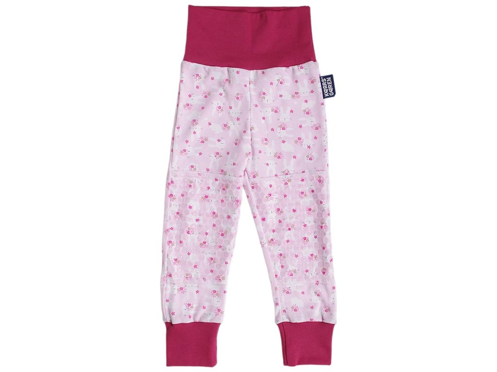 Protiskluzové kalhoty jsou praktickou volbou pro děti, které už chodí, ale stále ještě lezou nebo si často hrají na podlaze. Protiskluzová vrstva na kolenou jim dodá větší jistotu a bezpečí při pohybu na hladkých površích. Růžový design s veselými bílými zajíčky a kvítky působí roztomile a hravě.