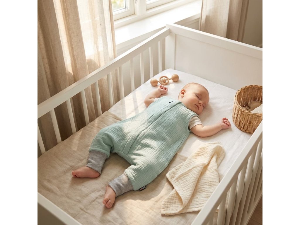 Hledáte letní spací pytel pro miminko, ve kterém se dítě nebude přehřívat a zároveň bude mít pohodlí po celou noc? Tento spací pytel s nožičkami v mentolové barvě je ušitý ze 100% bavlněného mušelínu – lehkého, prodyšného a příjemného materiálu.