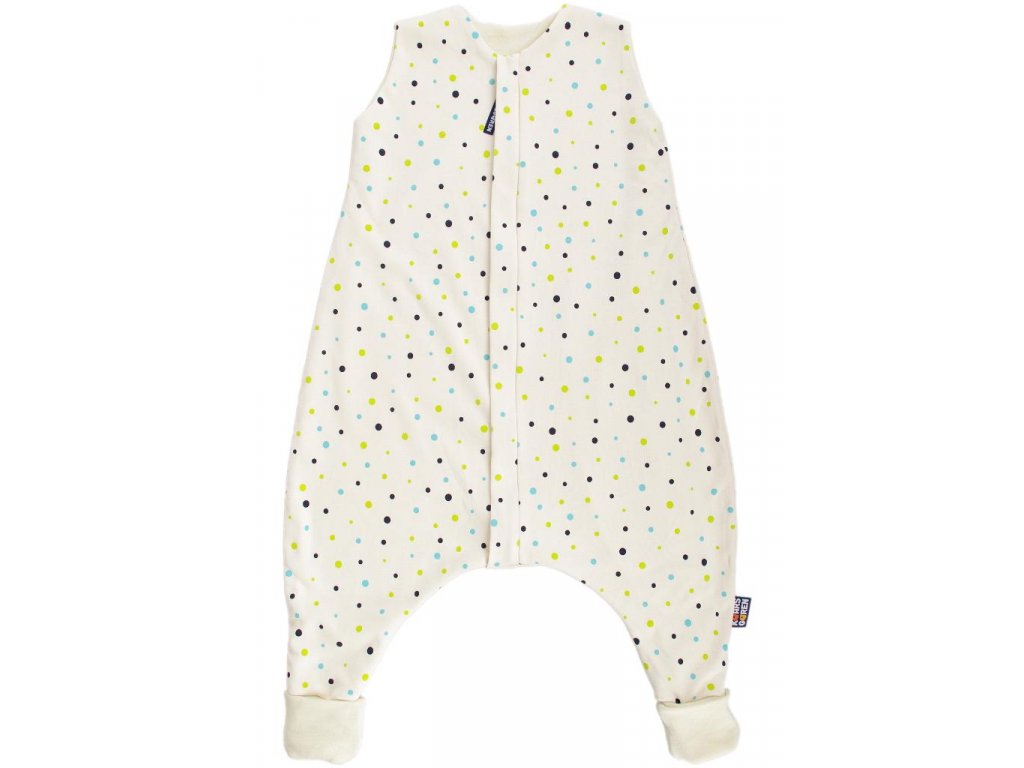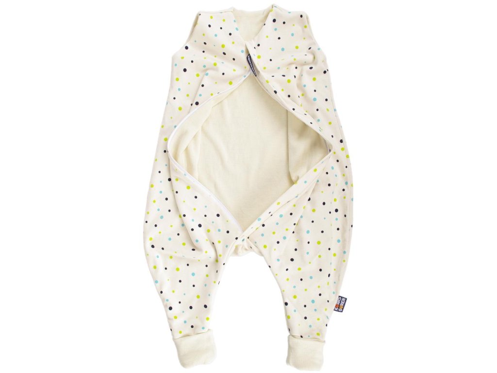 Bio spací pytel s podšívkou z merino vlny s motivem puntíků a s otvory pro nohy