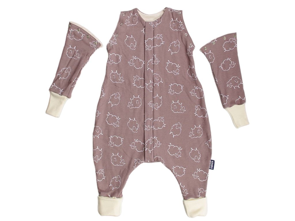 Merino spací pytel s nohavicemi a odepínacími rukávy – hnědé ovečky (70 cm)